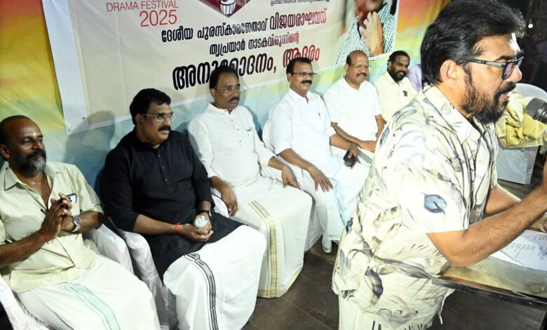 തൃപ്രയാർ നാടകവിരുന്ന് സമാപന സമ്മേളനം നടൻ വിജയരാഘവൻ ഉദ്ഘാടനം ചെയ്തു* . സംഘാടക സമിതി ചെയർമാൻ ഉണ്ണികൃഷ്ണൻ തഷ്ണാത്ത് അധ്യക്ഷത വഹിച്ചു. കേറ്ററേഴ്സ് അസോസിയേഷൻ സംസ്ഥാന ട്രഷറർ എം.ജി ശ്രീവത്സൻ നാട്ടിക മ ർച്ചൻ്റ്സ് അസോസിയേഷൻ സെക്രട്ടറി സുരേഷ് ഇയ്യാനി , തൃപ്രയാർ ദേവസ്വം മാനേജർ മനോജ് കെ. നായർ, തൃപ്രയാർ പ്രസ്ക്ലബ്ബ് പ്രസിഡൻ്റ് പ്രേമചന്ദ്രൻ വടക്കേടത്ത്, രാജൻ ചെമ്പാറ, സംഘാടക സമിതി കൺ വീനർ കെ.വി. രാമകൃഷ്ണൻ , ബിജു കുയിലം പറമ്പിൽ എന്നിവർ സംസാരിച്ചു. നടൻ വിജയരാഘവനെ ചടങ്ങിൽ പൊന്നാടയണിയിച്ച് ആദരിച്ചു. ചെട്ടി നാട് മെഡിക്കൽ കോളേജിൽ നിന്നും ഡെർമിറ്റോളജി എംഡി പാസായ ഡോ: പൂജ തഷ് ണാത്തിന് നടൻ വിജയരാഘവൻ ഉപഹാരം സമ്മാനിച്ചു.