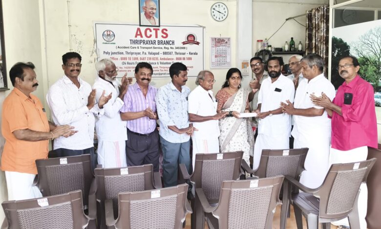 ആക്ട്സ് തൃപ്രയാർ ബ്രാഞ്ചിന് തൃപ്രയാർ ജലോത്സവ കമ്മിറ്റി ധനസായം നൽകി